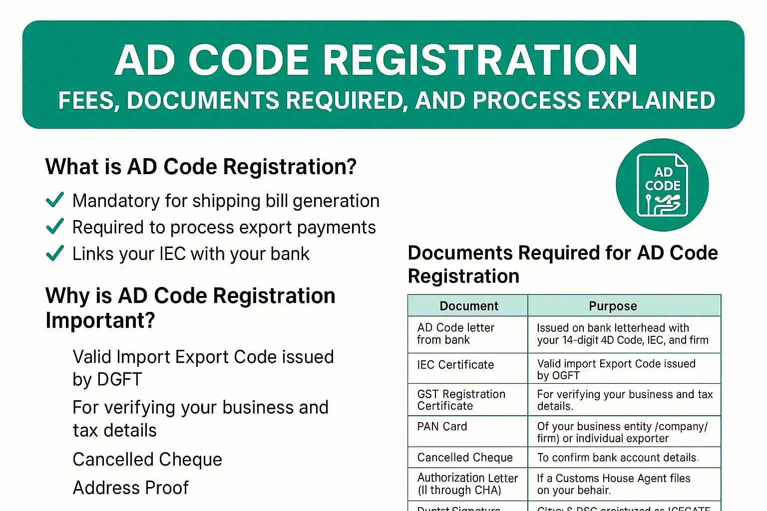 Without AD Code registration, shipping bills cannot be generated, halting your exports and foreign exchange realisation.