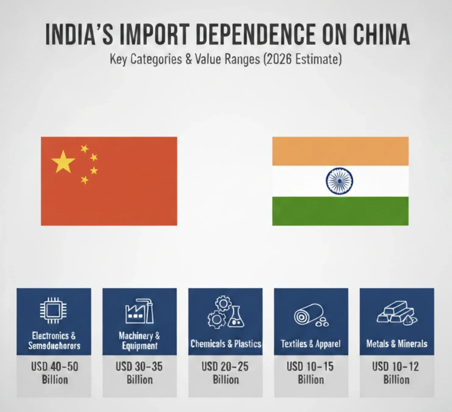这种贸易失衡反映出印度制造业对中国进口的电子产品、机械、化工产品及原材料高度依赖。为抵制中国廉价进口商品,印度对诸多品类加征高额反倾销税,使得从中国进口商品的成本较离岸价高出 40%-60%。