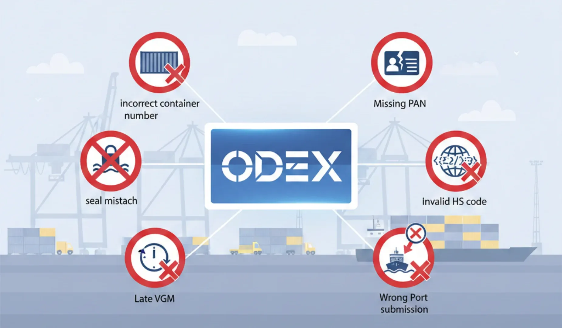 ODEX became mandatory for exports under SCMTR (Sea Cargo Manifest & Transhipment Regulations, 2018) because the Government of India mandates that all manifest data must be filed digitally before vessels depart or arrive. Manual email submissions are no longer acceptable. More importantly, ODEX eliminates the biggest pain points in ocean freight: