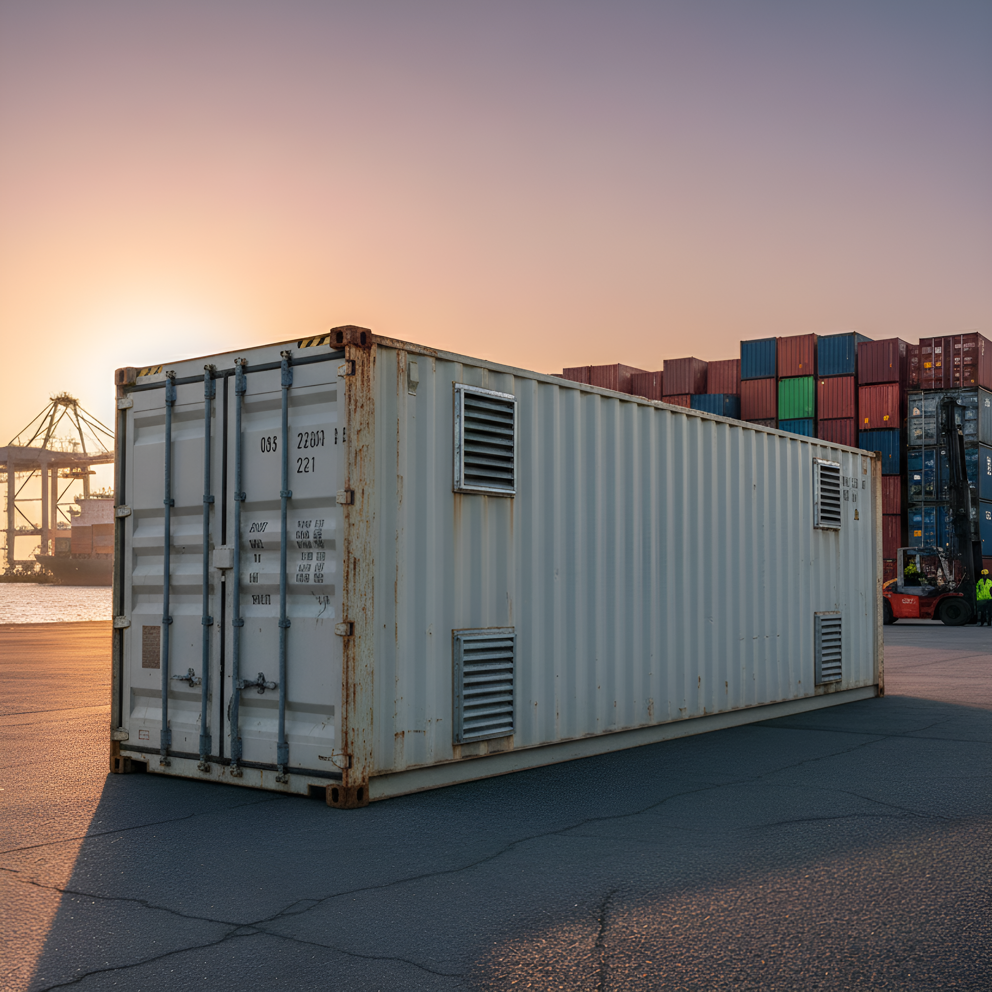 This is a dry container with special air vents cut into the sides that allow air to naturally circulate inside without any active cooling or power requirement. It's designed for cargo like coffee beans, cocoa, cotton, or grains that can get damaged by moisture buildup or mold but don't need temperature control. It's cheaper than a reefer container because there's no cooling system, no power requirement, and no need for plugs at every stop. If your product needs to stay dry and get some air circulation but doesn't need active refrigeration, ventilated is a good option.