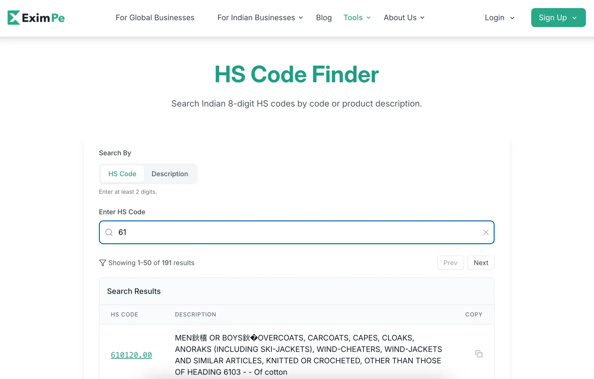 EximPe's HSN Code Finder Tool provides easy ways to search for products using select keywords or descriptions.